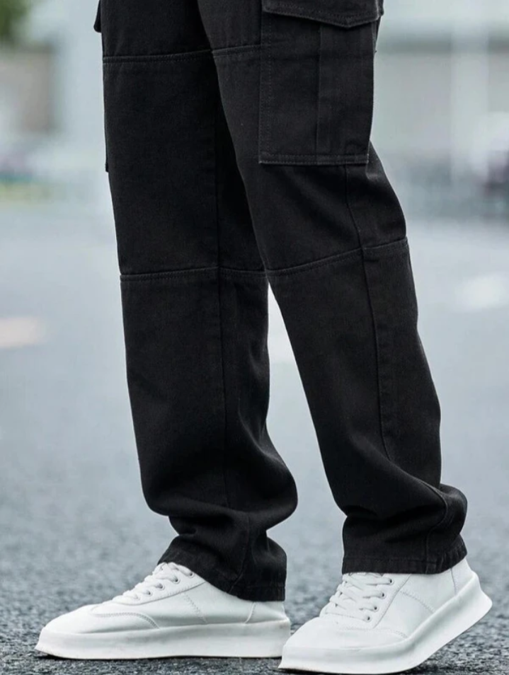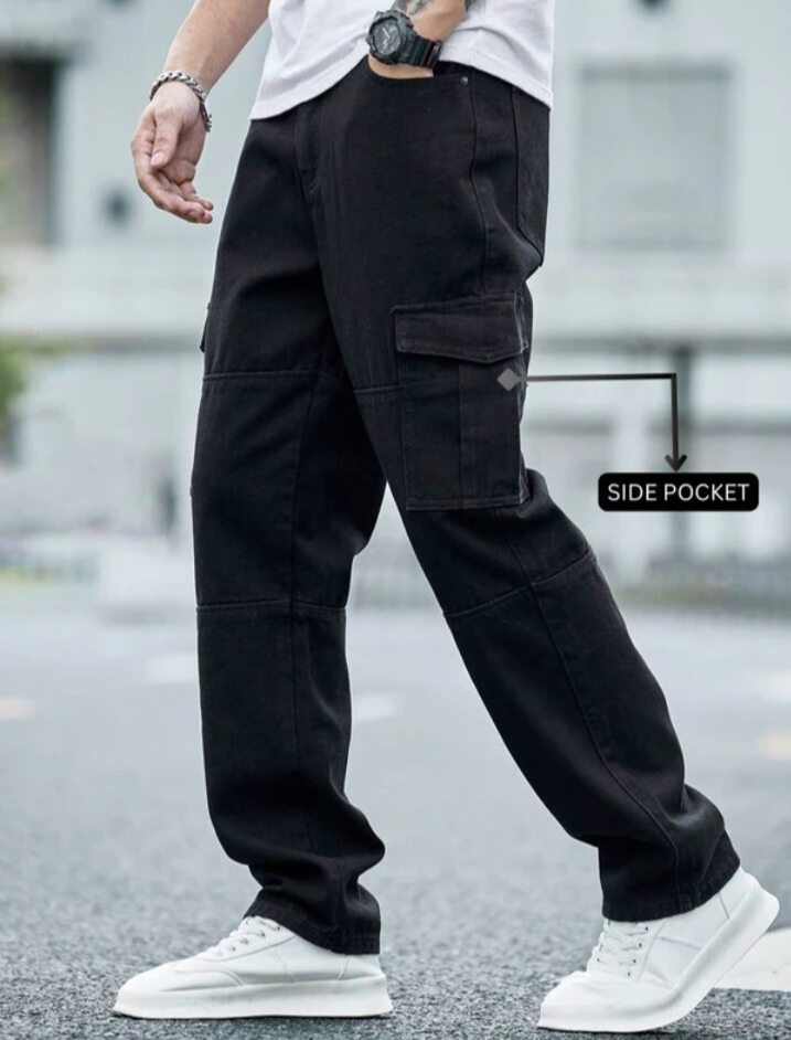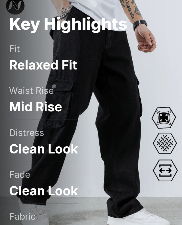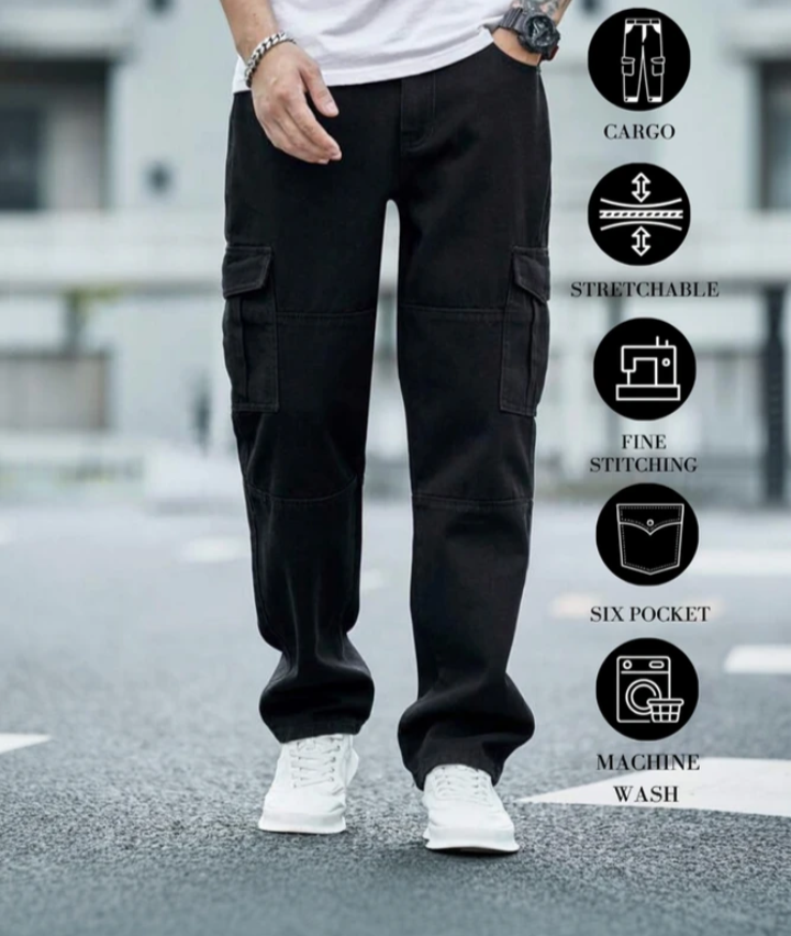 Upgrade your wardrobe with these versatile black six-pocket cargo jeans, designed for the modern man who values both style and comfort. Blending practicality with a sleek look, these jeans are perfect whether you're heading out for an adventure or just hitting the streets.